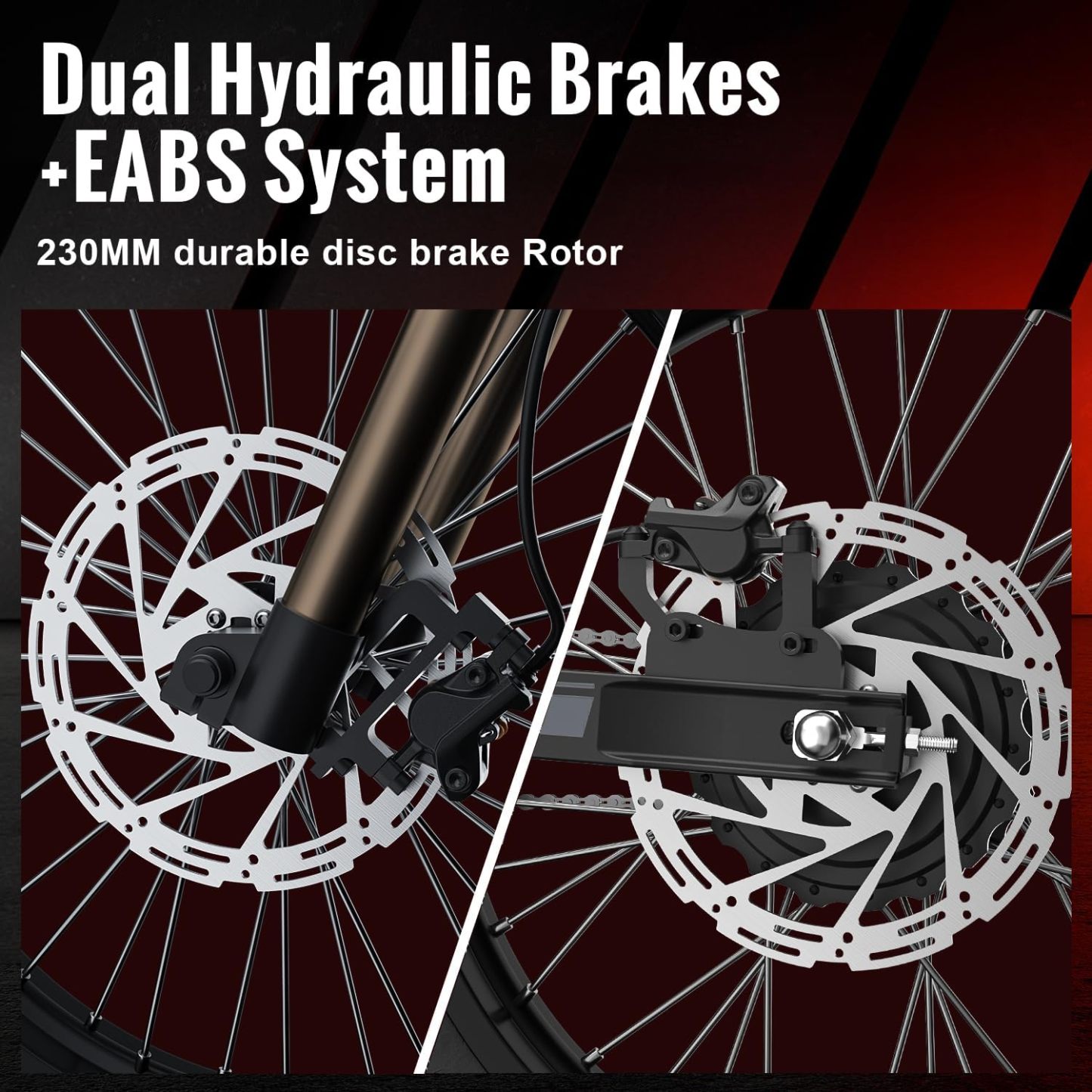 • Dual Hydraulic Brakes with 230MM Disc Rotors + EABS