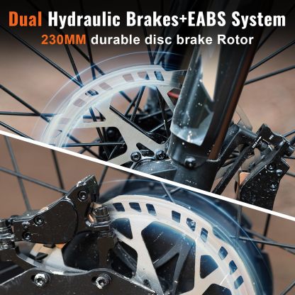 • 🛑 【Brakes That Stop On A Dime (And Look Cool Doing It)】230MM dual hydraulic discs + EABS? Stomp that lever, and you’ll lock it down faster than you can say “whoa.” No skids, no drama—just instant, solid stops. And those 3X LED front/tail lights? They’re like flipping on stadium lights. Night rides? You’ll light up the trail, and everyone’ll see you coming. Safety’s never looked this tough.