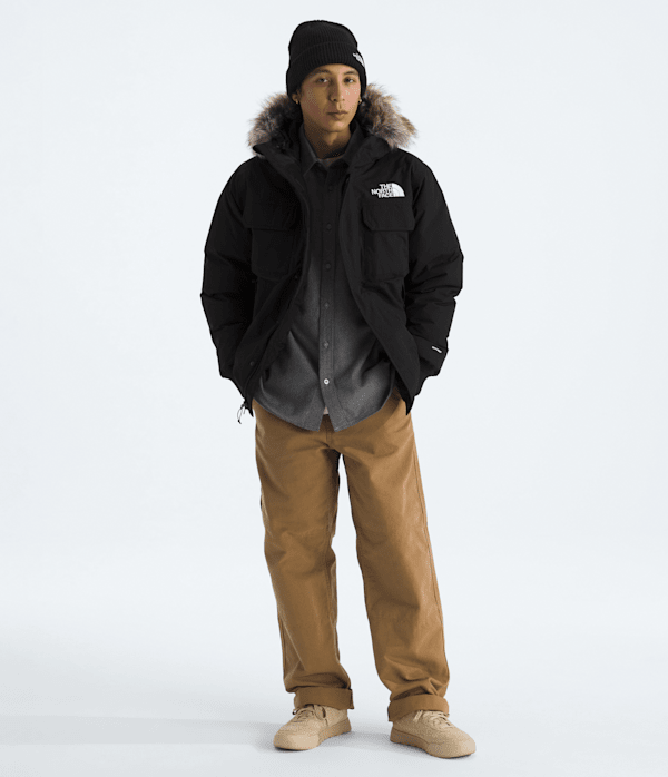 The Men's McMurdo Bomber has all of the technical features you need, now in a shorter silhouette. Made with waterproof, breathable DRYVENT™, 600-fill recycled down insulation, and designed with a mixture of secure-zip and hook-and-loop pockets, you'll be protected from the elements.