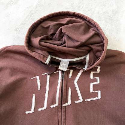 RARE 2000s zip heavyweight embroidered BROWN hoodie