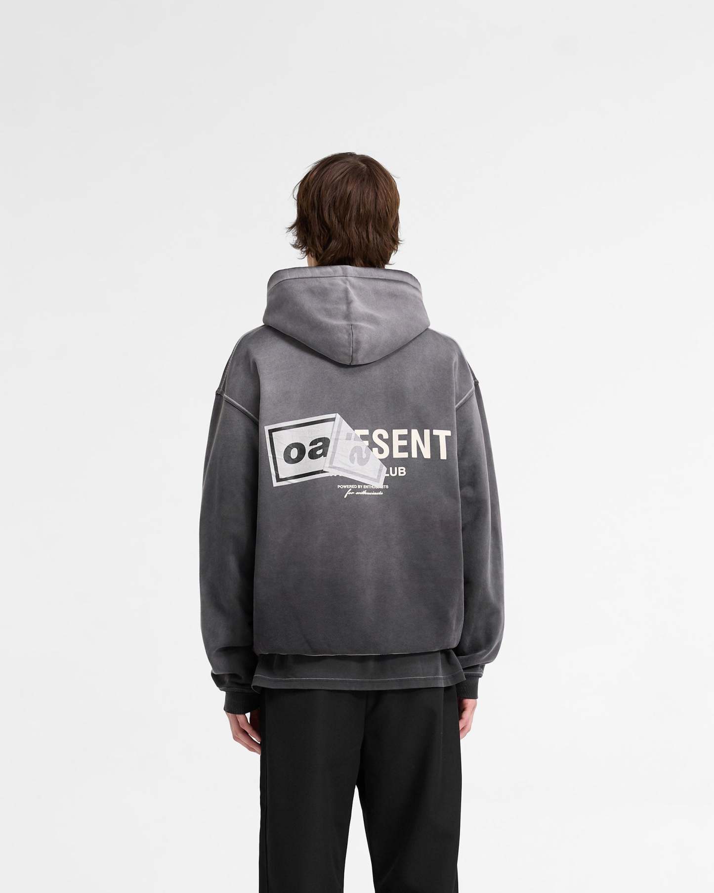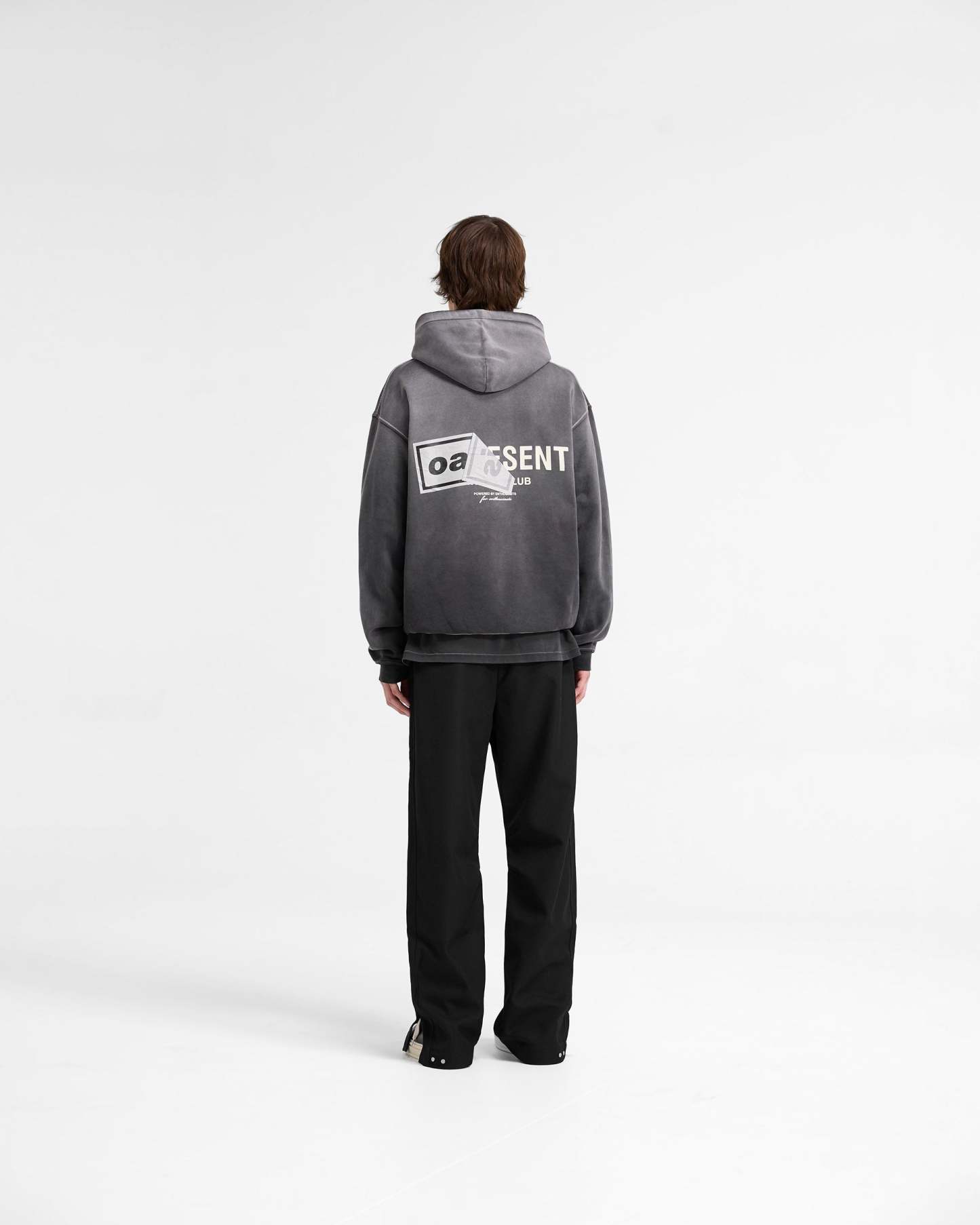 Introducing the Represent x Oasis Owners’ Club Hoodie in Stained Black with spray applied. Designed to celebrate the 30 year anniversary of Definitely Maybe, the hoodie showcases a back graphic of the fly postered Oasis band artwork with a tactile feel to the print, with the poster peeling off to reveal the iconic Represent Owners’ Club branding. To the front is a dual print of the Oasis box logo in a high density print, and the Owners’ Club logo.