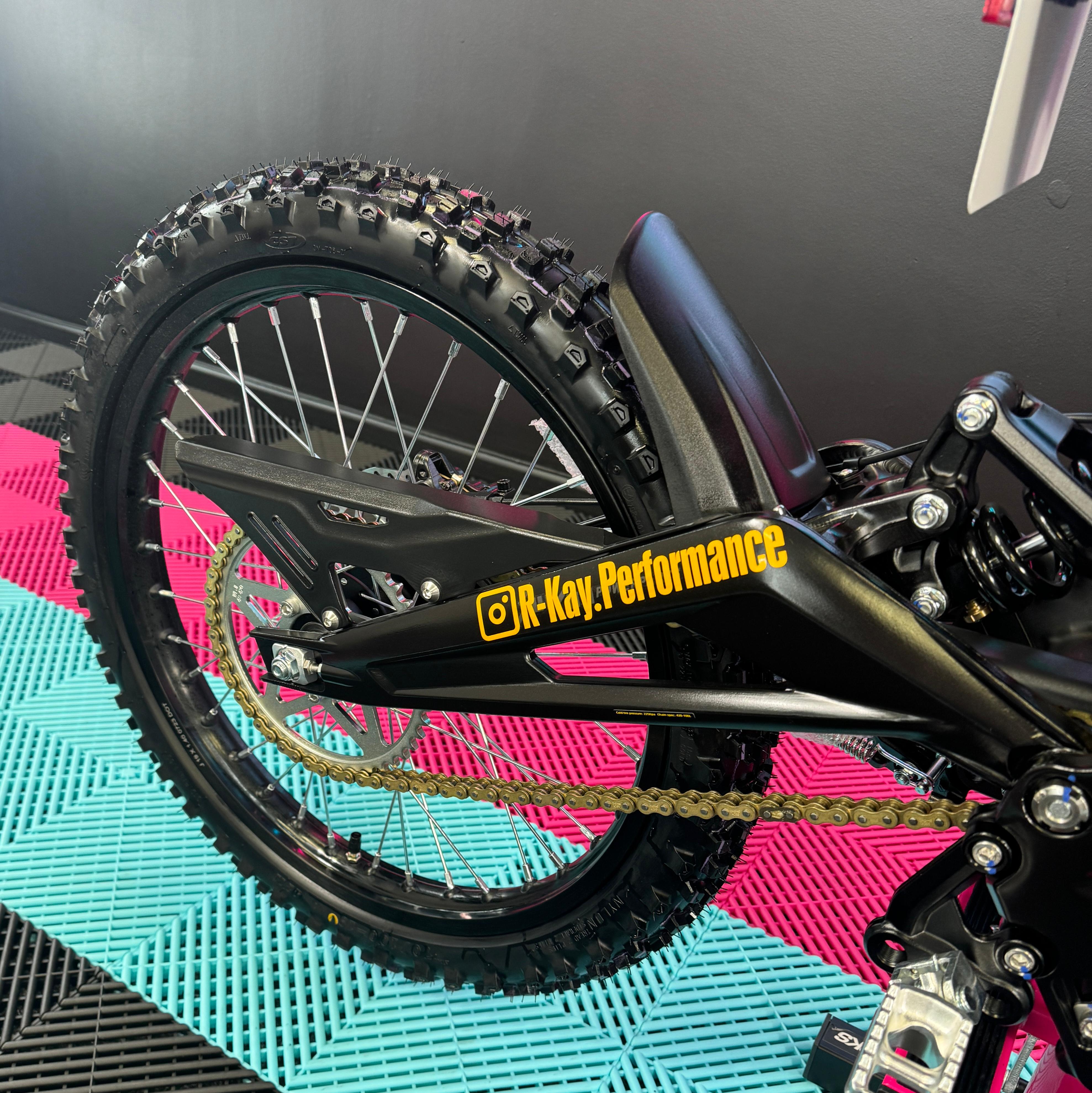 At R-Kay Performance, we're thrilled to offer the brand new Surron Light Bee X, a CE-approved UK-spec model. It's finished in the popular black with eye-catching orange stickers. With the latest 60v 40Ah Samsung Cell Battery, it delivers improved power and range, reaching speeds of up to 50mph. Plus, it comes with full 18 months warranty! It's an incredible package! 🎯