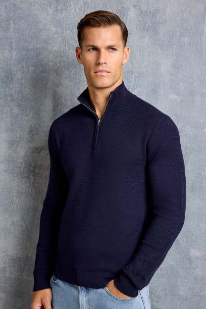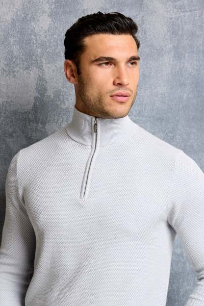 The Fabio Quarter Zip is knitted from a soft and breathable viscose blend with a subtle textured knit that adds depth without feeling heavy. The slim fit keeps the silhouette sharp while the knit stays comfortable throughout the day. The quarter-zip collar adds a slightly sharper look while keeping the overall design minimal.